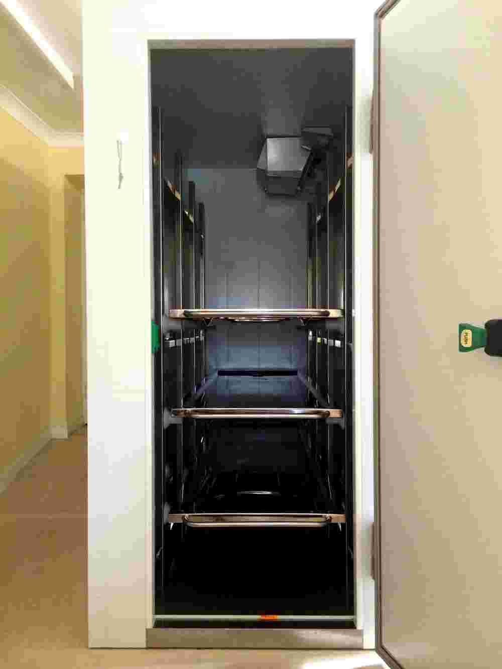 The Body Trays were formed and made again from 316 Stainless Steel and polished by hand at Kenyon. Internal Chamber flooring was in 304 Stainless Steel. The Refrigeration Unit was a Kenyon Mono block unit made in house and with 125% of duty required, bigger Coils and high velocity Fans. This allows the Chamber to pull down to temperature quicker and to rest longer, in turn using less energy.