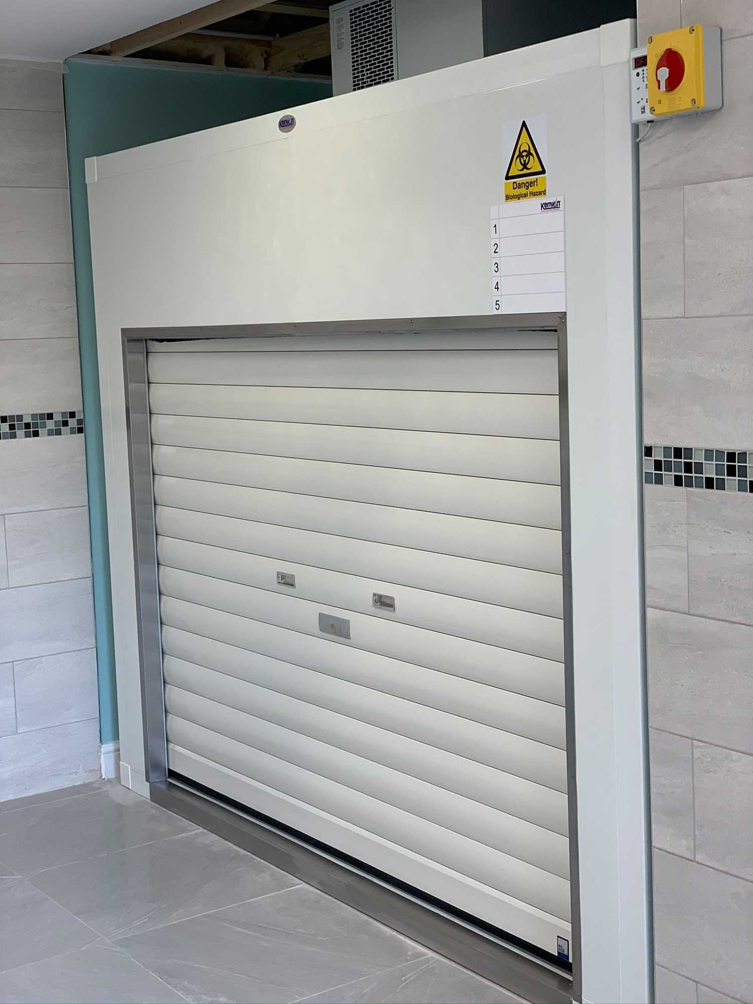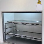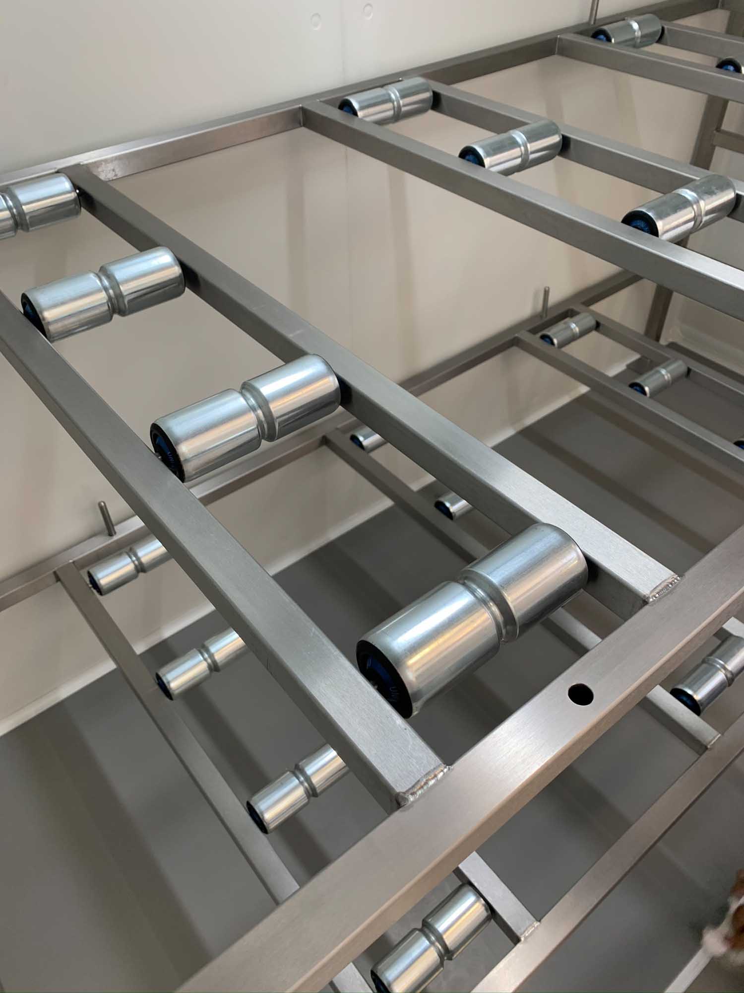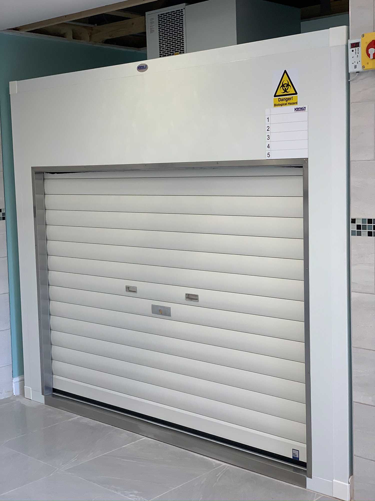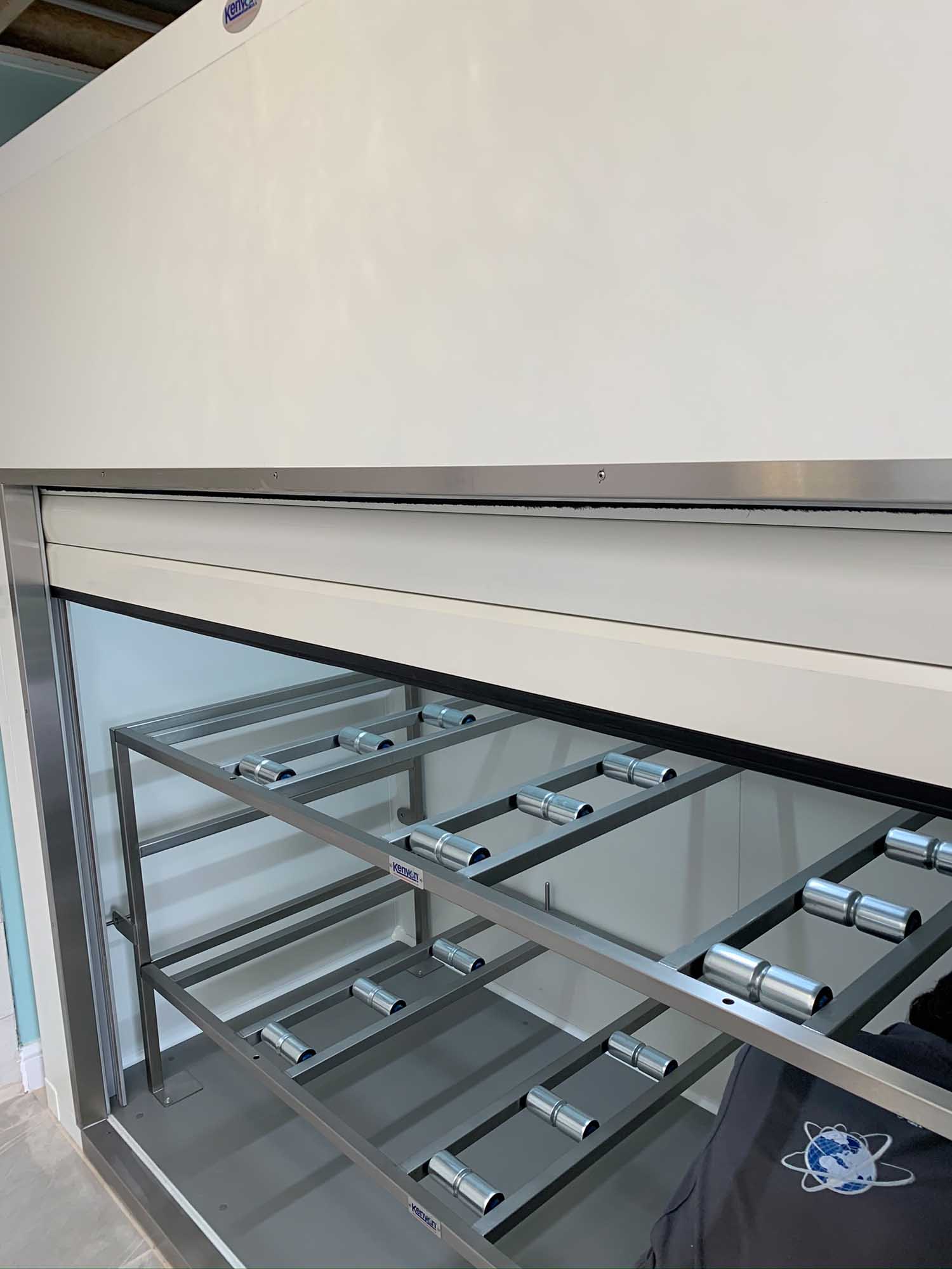 The Kenyon Lateral Chamber was fitted with an insulated roller shutter door, complete with rubber “sweeper gasket.” Interior furniture consisted of 316 Stainless Steel racking with stub rollers. The body trays were bright polished and 316 Stainless Steel complete with drain hole and plug.