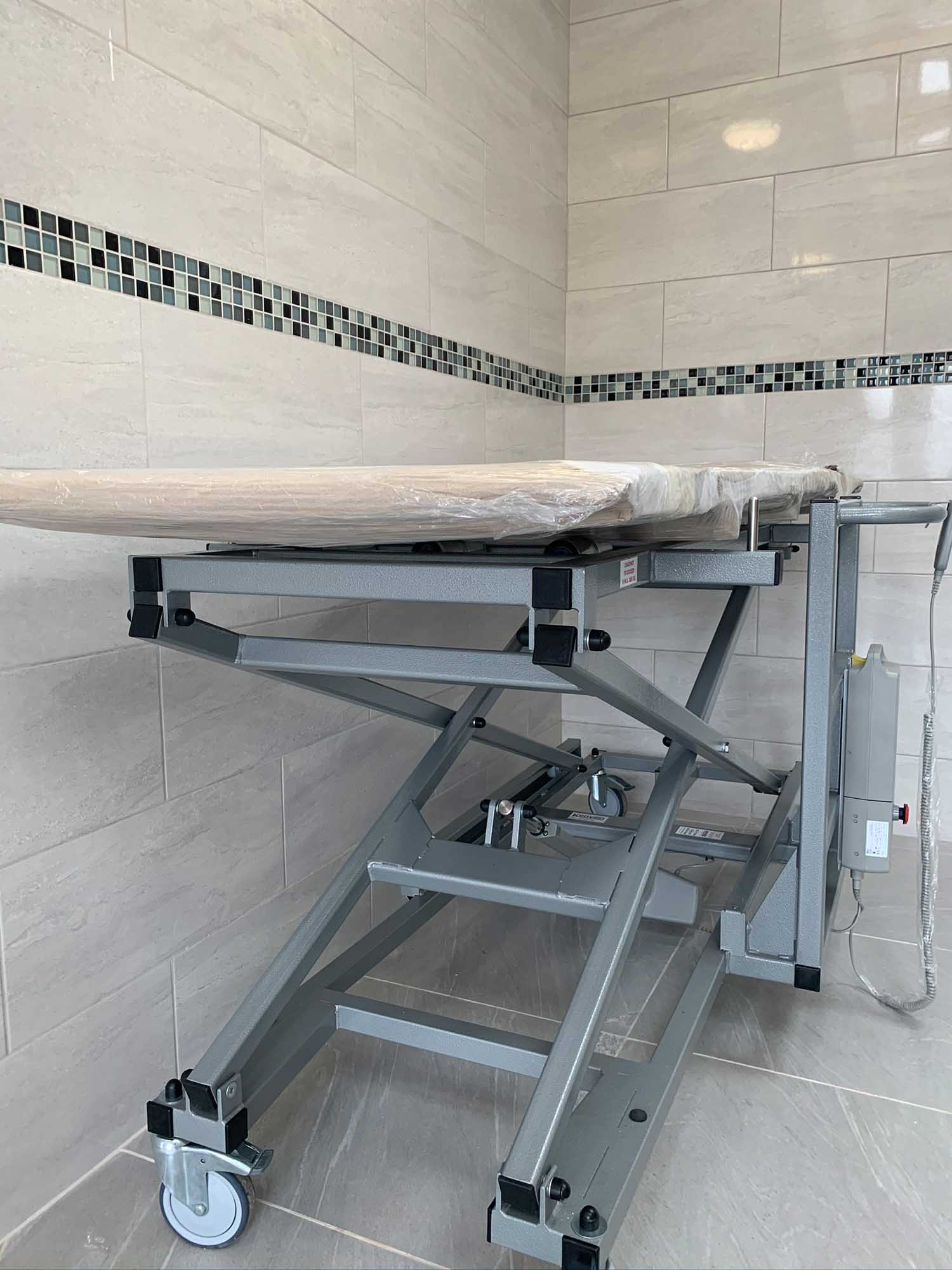 The Ghusal Table was fitted with the Kenyon Specification Swan neck Lever Action Taps made in Stainless Steel. This allows for Elbow operation of the Levers during Ghusal. The Kenyon Ghusal Table has a Mixer unit fitted that controls the flow to two Shower Hoses on either side of the Table. There is a Thermostat that is fitted to allow for an optimum water temperature via all outlets. The Table has Safety Non-Return Valves on all Services for added hygiene. The Kenyon Ghusal Table has been designed with the Plenum set at an optimum height and set back distance to allow for ergonomic operation with no obstruction to the operator’s knees. The Kenyon Ghusal Table comes with a Stainless Steel removeable Privacy and Awrah Cover.