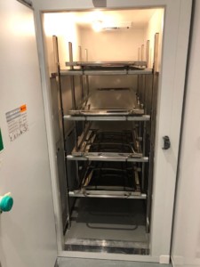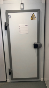 Kenyon supplied their high efficiency Modular Italian Cold Roommade using our unique patented “Profile System”. This enables every panel to lock together from the floor to the ceiling. There are no screws, rivets or 90 degree angle sections used in our build as the whole unit is totally modular and locks together with a key. The chamber door was supplied extra wide at 800 mm so coffins could be inserted in to the chamber and then on to the Kenyon full width rollers.
